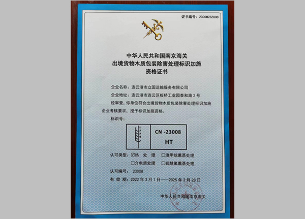 公司廠房占地20余畝,擁有專業(yè)機械設備30套,專業(yè)技術(shù)人員50余名。擁有一套現(xiàn)代化的能效高、效果好的熱處理窯,能較好的完成木材的干燥及有害生物的殺滅,已于2007年獲得出境木質(zhì)包裝標識加施資格,是連云港海關指定定點木包裝熱處理單位。經(jīng)我公司加工出口的木質(zhì)包裝年產(chǎn)量20萬套以上,產(chǎn)值1600萬余元。目前是連云港區(qū)域同行業(yè)規(guī)模及產(chǎn)能最大的專業(yè)生產(chǎn)廠家。